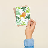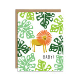 "Baby!" with Jungle Leaves + Lion Greeting Card