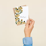 This card features an original illustration hand drawn by me, Susan Hazel Rich. The design is printed on bright-white, ultra-thick matte paper, which was selected for its quality and offers an absorbent writing surface. The paper and envelopes are manufactured in the USA with 100% renewable green energy and post-consumer fiber, are processed chlorine free, and meet the mark of responsible forestry. Each card comes with an envelope.