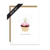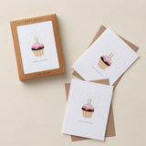 BOX SET OF 8 - "Happy Birthday" Cupcake Greeting Cards