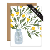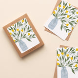 These cards feature an original illustration hand drawn by me, Susan Hazel Rich. The design is printed on bright-white, ultra-thick matte paper, which was selected for its quality and offers an absorbent writing surface. The paper and envelopes are manufactured in the USA with 100% renewable green energy and post-consumer fiber, are processed chlorine free, and meet the mark of responsible forestry. Each set of cards comes with envelopes.