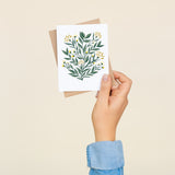 This card features an original illustration hand drawn by me, Susan Hazel Rich. The design is printed on bright-white, ultra-thick matte paper, which was selected for its quality and offers an absorbent writing surface. The paper and envelopes are manufactured in the USA with 100% renewable green energy and post-consumer fiber, are processed chlorine free, and meet the mark of responsible forestry. Each card comes with an envelope and a gold closure sticker.