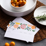 These recipe cards feature original illustrations hand drawn by me, Susan Hazel Rich. The design is printed on bright-white, ultra-thick matte cardstock paper, which was selected for its quality and durability, and offers an absorbent writing surface. The paper is manufactured in the USA with post-consumer fiber, practices that reduce pollution, and energy saving production methods.