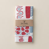 This towel features a sweet design reminiscent of cobblers, pies, and grandma's pantry. Fig, strawberry, and blackberry jams join forces along with delicate red florals in this summery design. This tea towel features an original illustration hand drawn by me, Susan Hazel Rich. Each towel is sewn in the Midwest USA from the highest quality 100% cotton flour sack fabric. The flour sack material is woven with a unique fiber pattern, which provides a truly absorbent, soft and washable towel. The designs are carefully screen printed in the Midwest USA with environmentally friendly inks. Hazelmade’s process includes a professional finish, which sets the ink colors to provide long-lasting color even after multiple trips through the washer and dryer. Hazelmade’s towels were designed with beauty and durability in mind. They are meant to be used every day and are sure to brighten any space. My towels are intentionally designed with what is called a "drop design" rather than an edge-to-edge pattern. This signature Hazelmade style has hidden function behind it; a wide fabric border around the design creates a towel with an increased area for extra absorbency. These design motifs display best when draped over oven handles or towel racks.