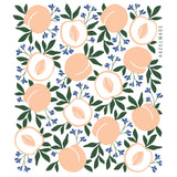 These peaches and delicate blue flowers will transport you to the farm fruit stands of late summer filled with ripe, fragrant peaches. This tea towel features an original illustration hand drawn by me, Susan Hazel Rich. Each towel is sewn in the Midwest USA from the highest quality 100% cotton flour sack fabric. The flour sack material is woven with a unique fiber pattern, which provides a truly absorbent, soft and washable towel. The designs are carefully screen printed in the Midwest USA with environmentally friendly inks. Hazelmade’s process includes a professional finish, which sets the ink colors to provide long-lasting color even after multiple trips through the washer and dryer. Hazelmade’s towels were designed with beauty and durability in mind. They are meant to be used every day and are sure to brighten any space. My towels are intentionally designed with what is called a "drop design" rather than an edge-to-edge pattern. This signature Hazelmade style has hidden function behind it; a wide fabric border around the design creates a towel with an increased area for extra absorbency. These design motifs display best when draped over oven handles or towel racks.