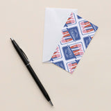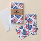 These mini notes feature an original illustration hand drawn by me, Susan Hazel Rich. The design is printed on bright-white, smooth-matte paper, which was selected for its quality and offers an absorbent writing surface. The paper and envelopes are manufactured in the Midwest with post-consumer fiber, practices that reduce pollution, and energy-saving production methods. Each mini note comes with an envelope. These items are not sized for U.S. Mail.